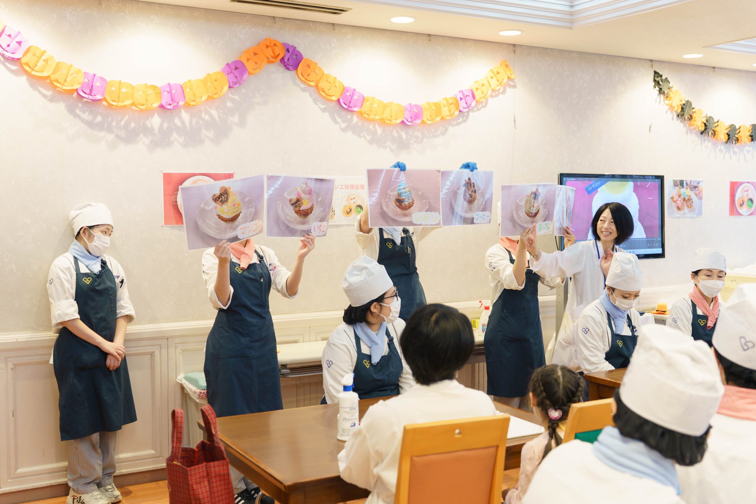 また、体験コーナーでは、ハロウィンのアイシングクッキー体験と、オリジナルカップケーキの準備から、参加者への丁寧なサポートを実践しました(^O^)/