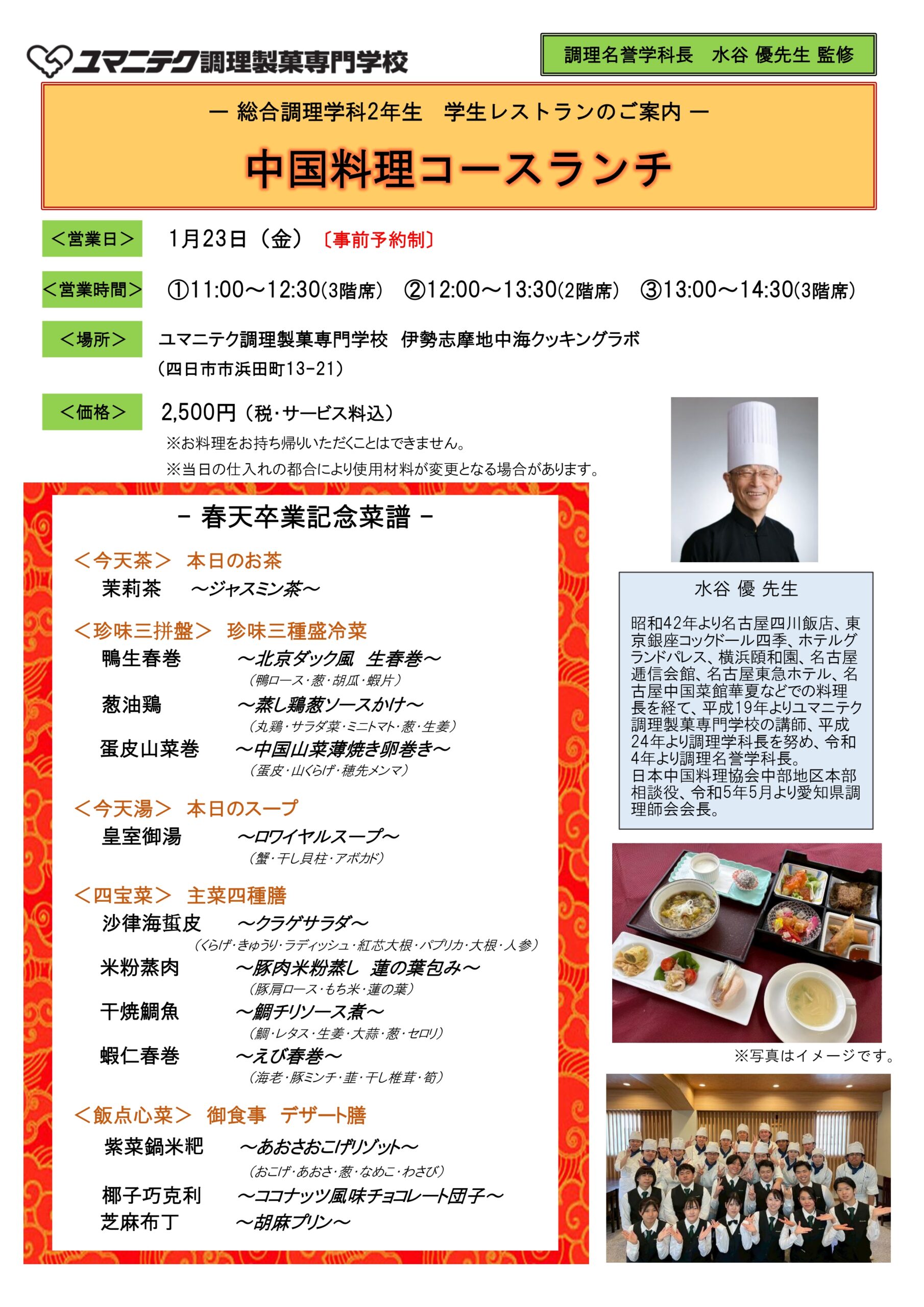1月23日(金)「中国料理コースランチ」料金2,500円(税込)